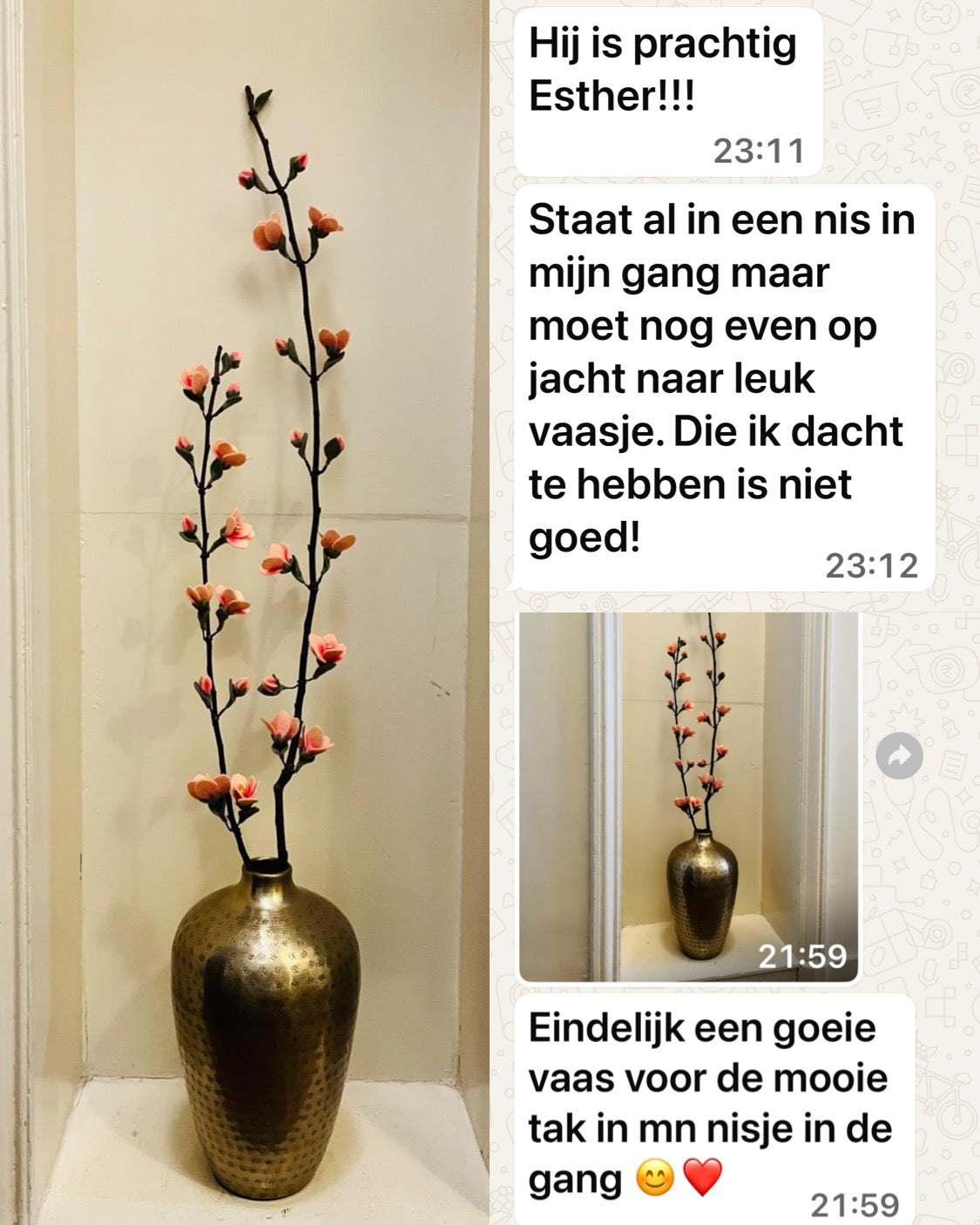 Ik heb ook allerlei leuke vazen bij de bloemen te koop. Ik...