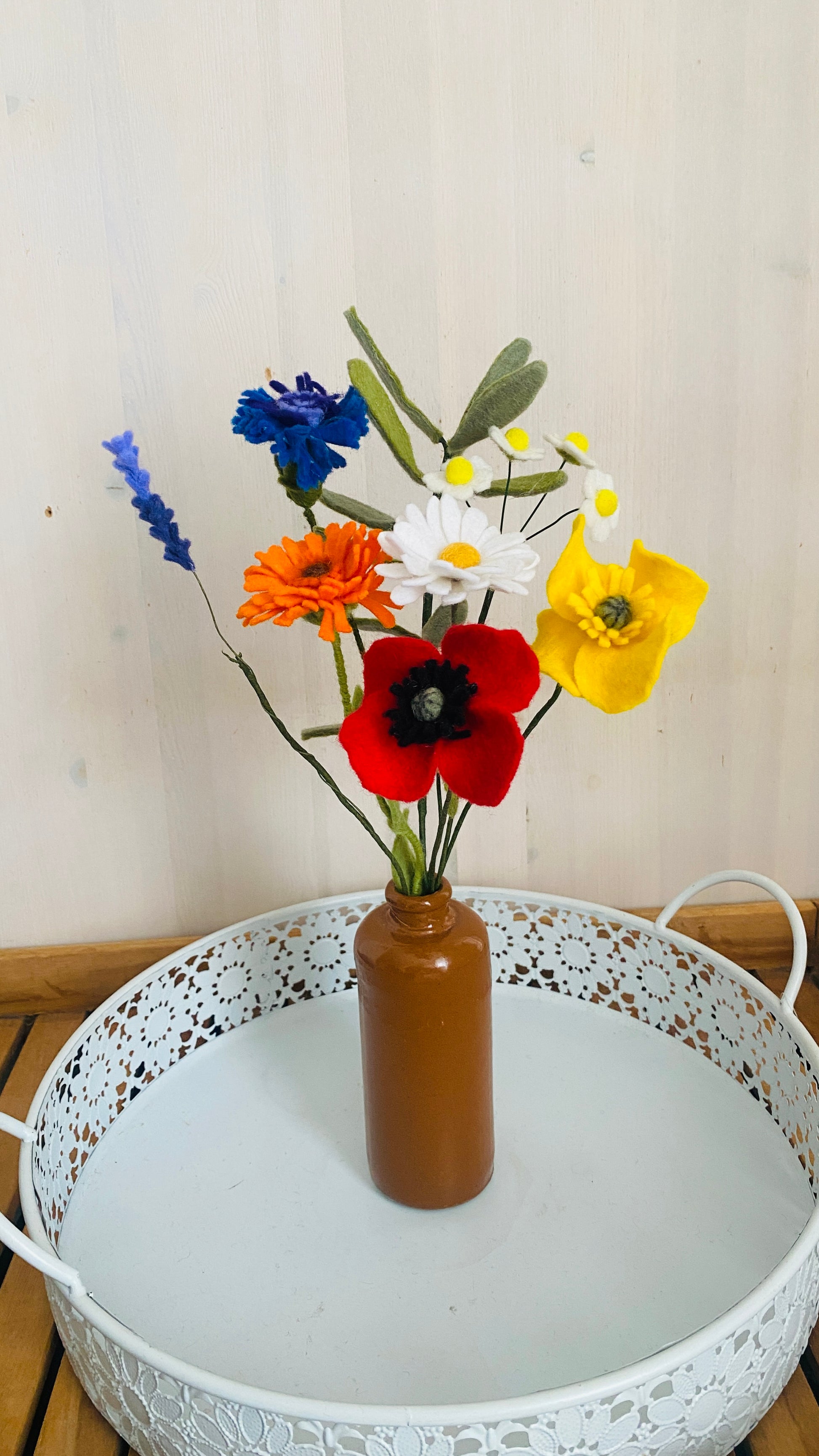 Breng kleur, zachtheid en sfeer in huis met dit unieke boeket handgemaakte viltbloemen. Elke bloem is zorgvuldig met de hand gemaakt van hoogwaardige materialen en blijft jaar na jaar prachtig – zonder te verwelken.