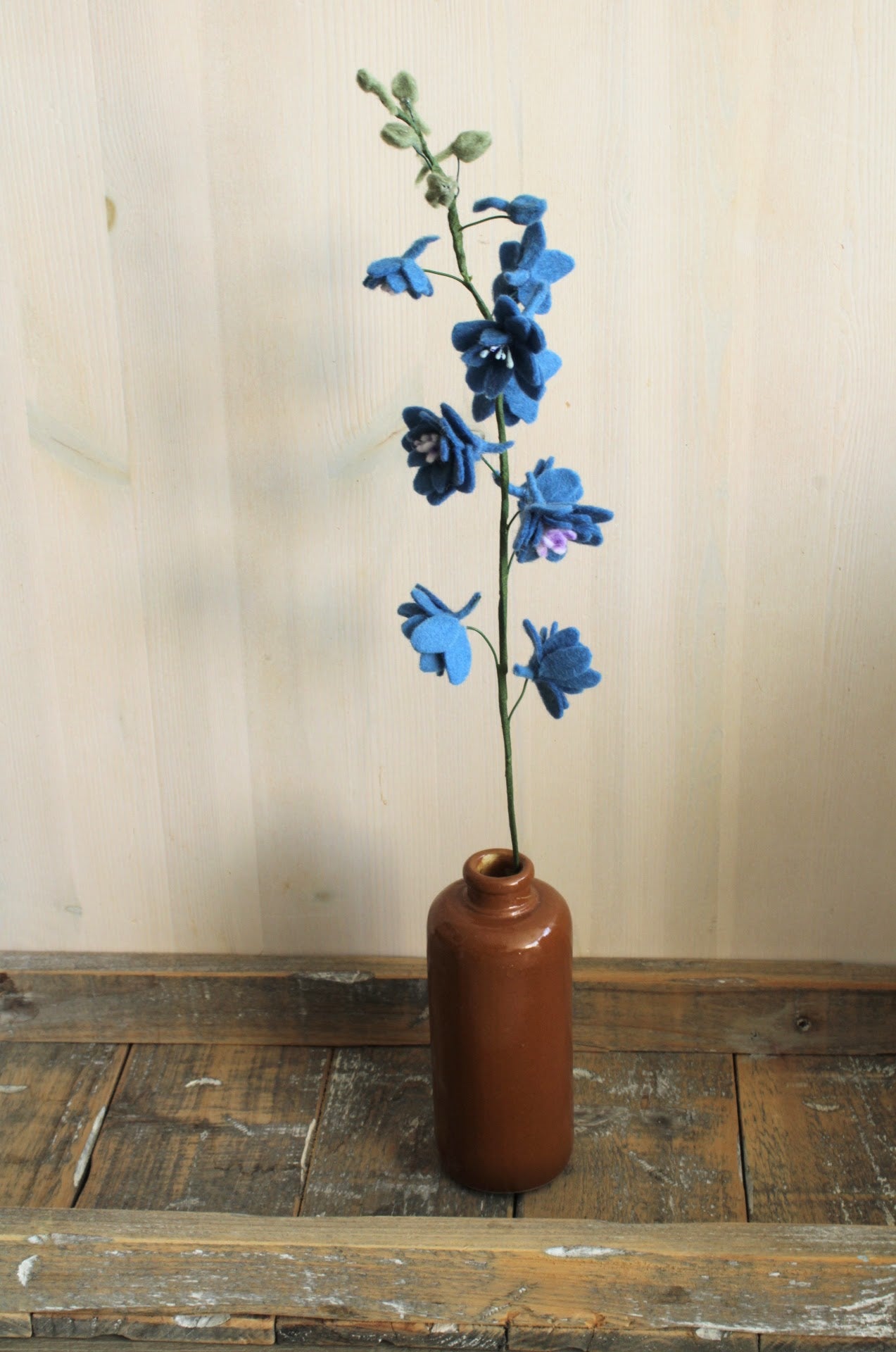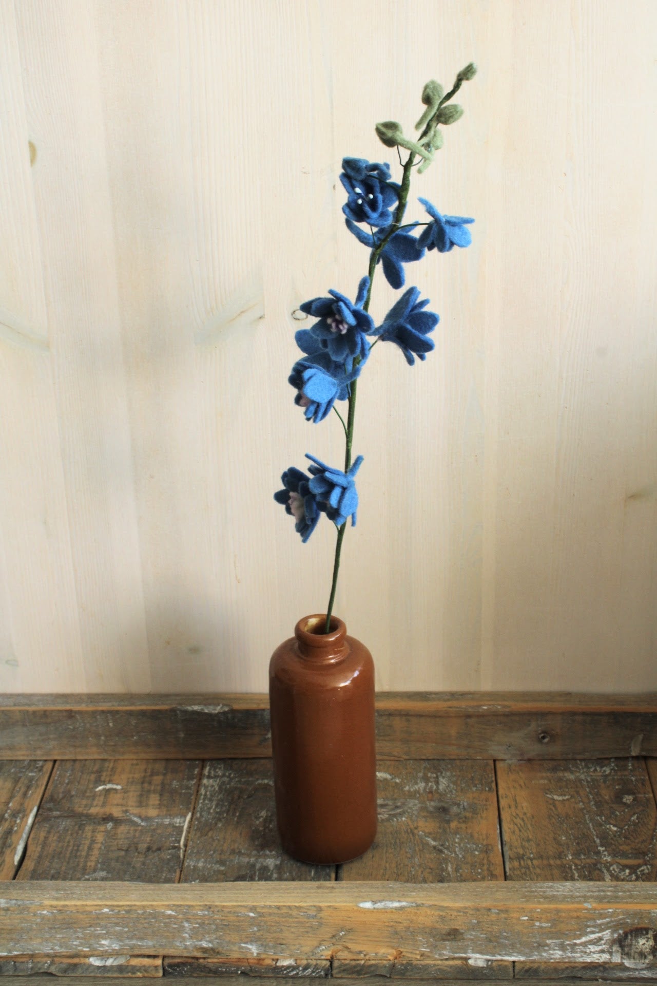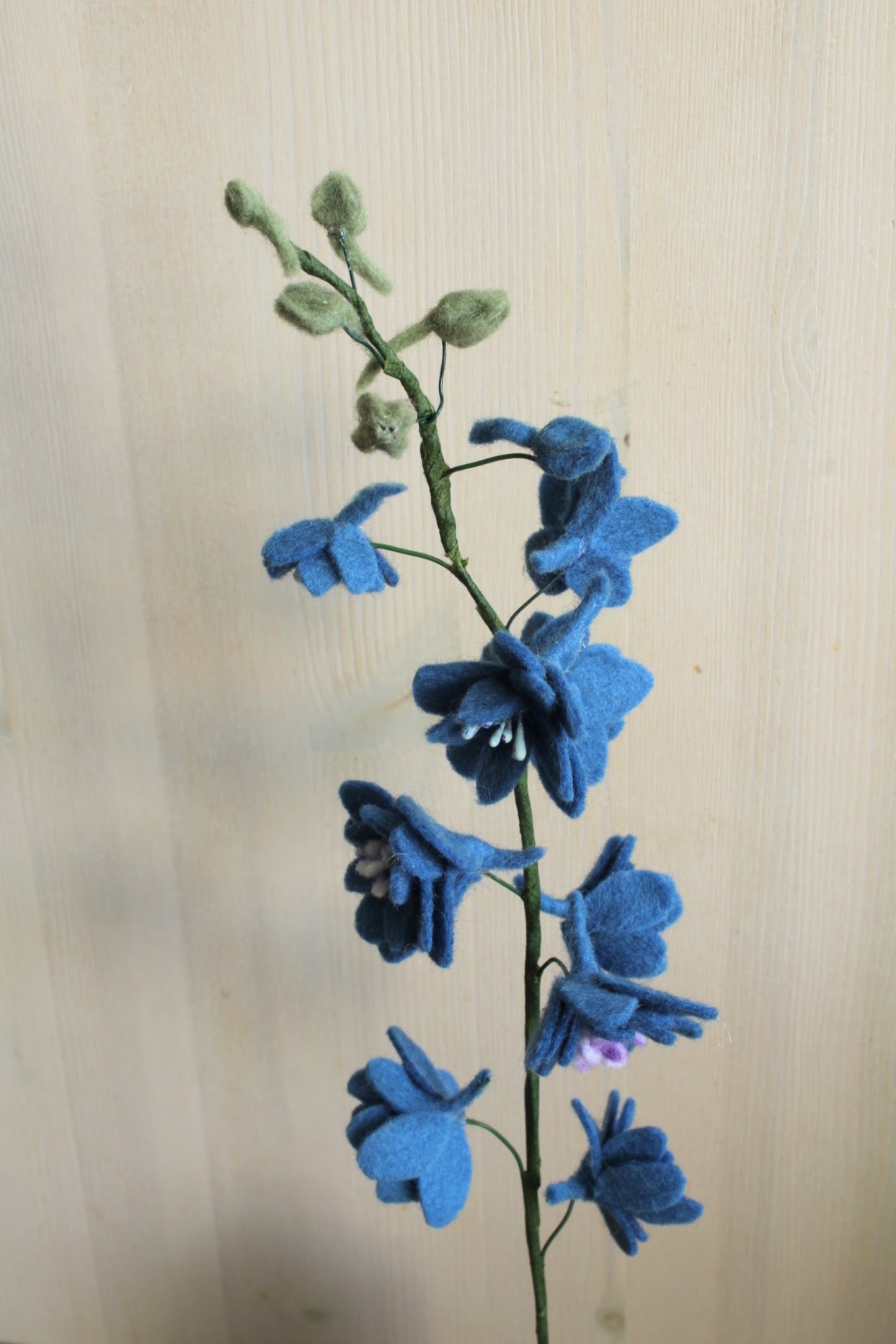 Deze handgemaakte ridderspoor van wolvilt voegt kleur en charme toe aan elk interieur. Blijvend mooi, duurzaam én perfect in een viltboeket.