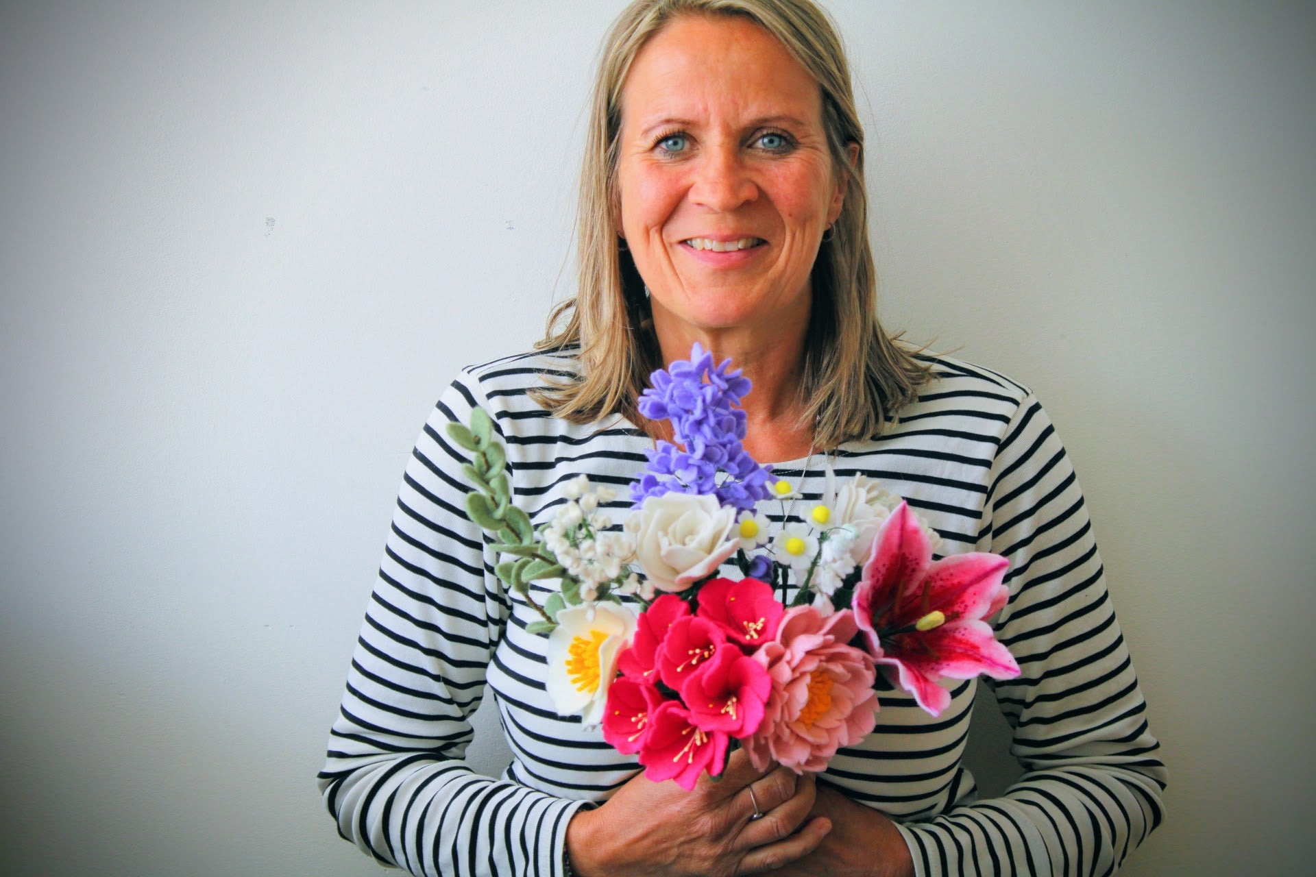 Welkom bij Het Viltbloemenatelier! Ik ben Esther Steur, de maker van deze handgemaakte viltbloemen.
