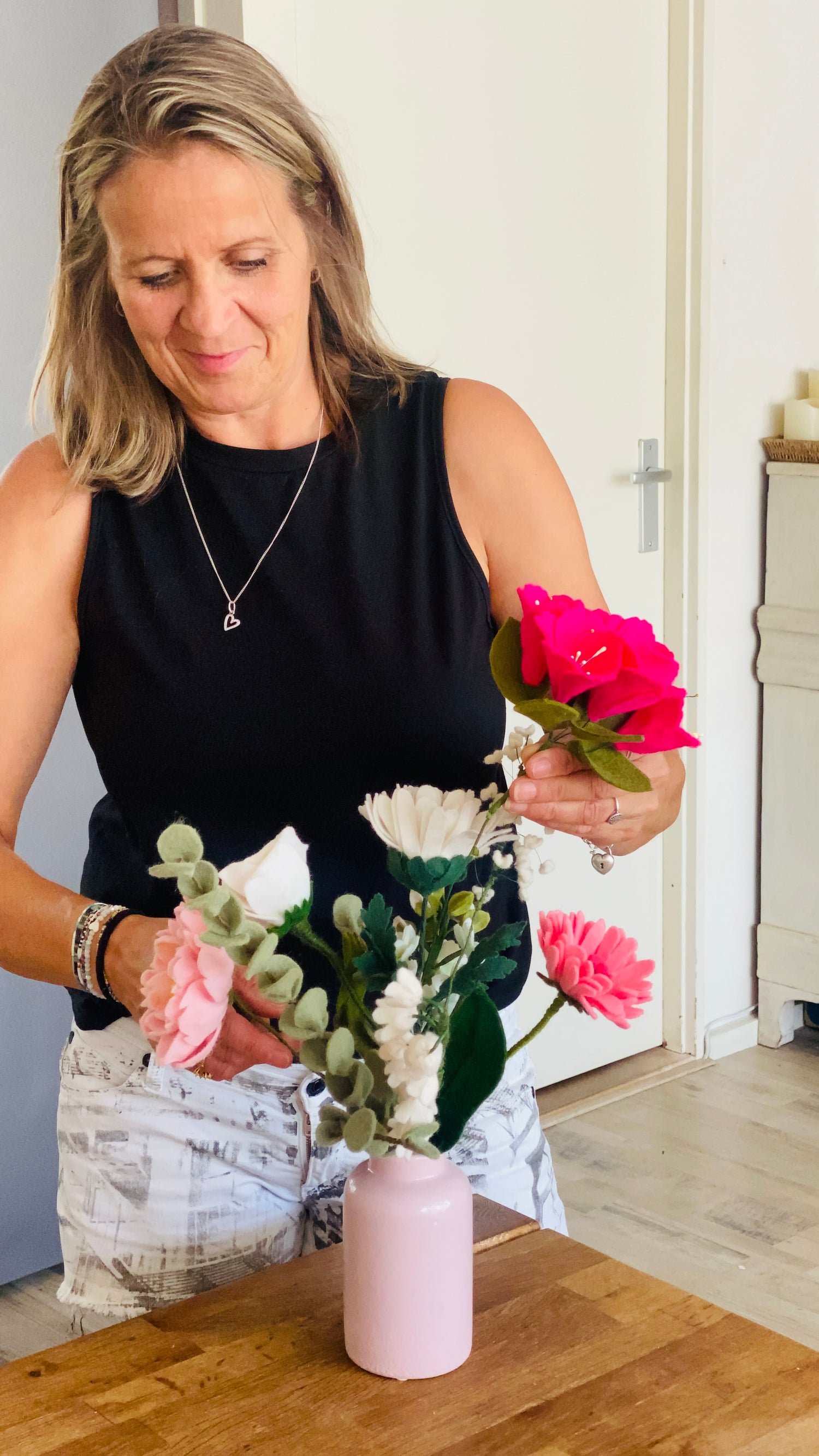 Mijn liefde voor bloemen, en mijn creativiteit brachten me op het idee om viltbloemen te gaan maken. Ik wilde iets creëren dat net zo mooi is als echte bloemen, maar dan blijvend. Zo ontstond Het Viltbloemenatelier, waar ik met veel zorg unieke bloemen zelf ontwerp en samenstel.